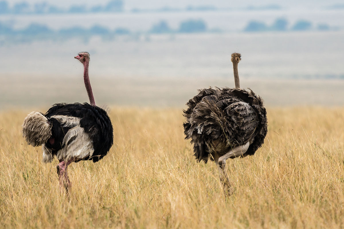 © Dr. Rainer Flemming: Straußenpaar; Somalistrauß (Struthio molybdophanes)